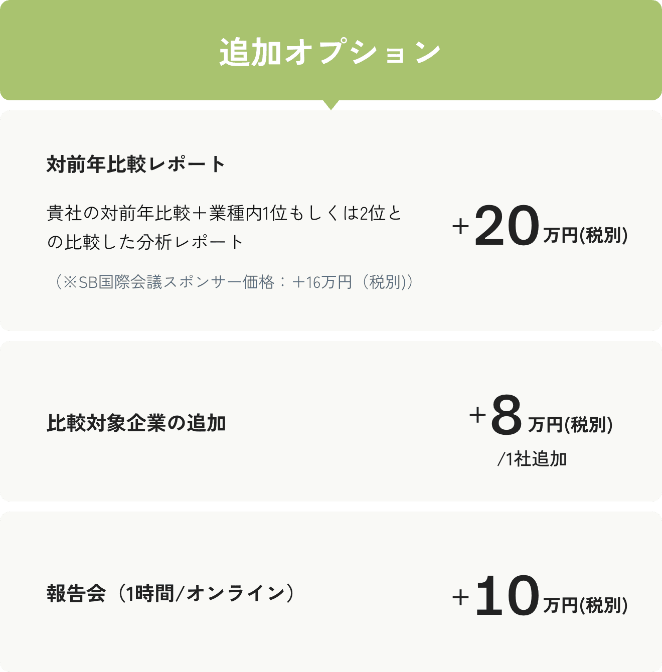 ※個別報告書の解説は行っておりません。必要な場合は、報告会もセットでお申し込みください。