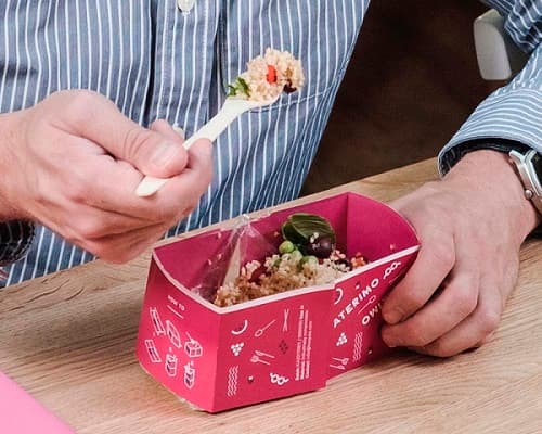 キャップ付きのボトルや、建築資材などに使われるハニカム(多孔材)などをすでに試作しているが、もっと簡単な食品トレーやコンビニの弁当箱、紙コップのフタなどへの応用も考えている。
