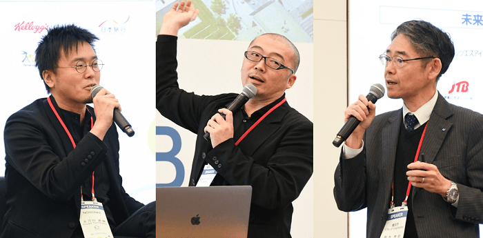 続くセッションでは、未来まちづくりフォーラム実行委員長の笹谷秀光氏がファシリテーターを務め、オカムラの庵原悠氏、日本製紙クレシアの髙津尚子氏が自社の取り組みを紹介し、メディア側からの視点としてハフポスト日本版の南麻理江氏がコメントをする形でセッションを進めた。