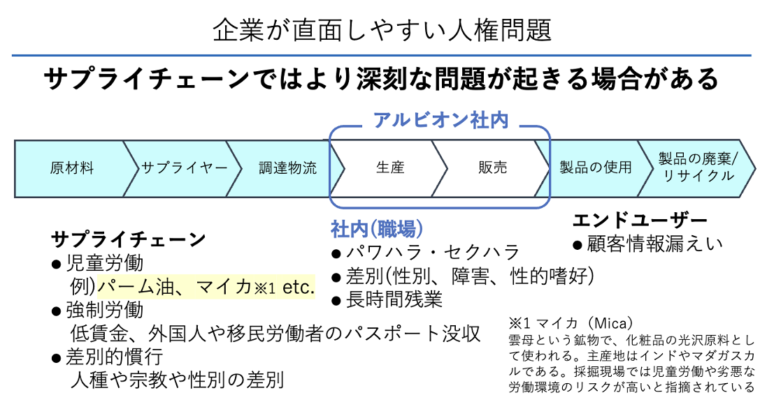 「ビジネスと人権」や人権デューデリジェンス(以下、人権DD)と聞くと、「なんだか難しそう……」と身構えてしまう人も多いのではないでしょうか。重たいテーマと感じられがちで、制度づくりや仕組み整備も簡単ではありません。そんな中、高級化粧品メーカーのアルビオンは2025年度から人権問題への取り組みに本格的に着手しました。その焦点は「人権問題を未然に防ぐ」という予防策。現在進行中のユニークな取り組みを紹介します。