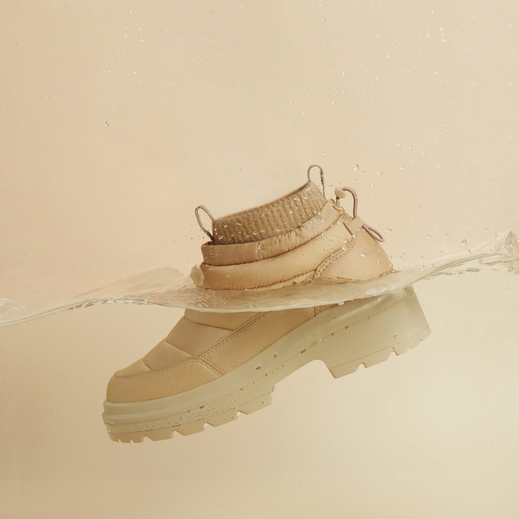 今回発表となったのは、デザイン性と機能性を兼ね合わせた新作ブーツ「Tyler」。リサイクルプラスチック糸、パフコットン、ポリウレタンなどの素材が組み合わせられ、完全防水性や暖かさ、通気性など冬場にうれしい多くの機能が実現されている。