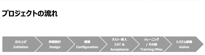 織戸 テーラーメイドの一例をご紹介すると、プロジェクトの立ち上げ、詳細設計、構築、テスト・受入、トレーニング、システム稼働といった流れになります。テーラーメイド型の大規模プロジェクトの場合、稼働まで1年以上かかるケースもありますが、限られた範囲でまず導入するパッケージ型であれば、最短6週間ほどで稼働した実績もあります。このように、導入スコープや企業の体制に応じて柔軟に期間・規模を調整できるのも特徴です。