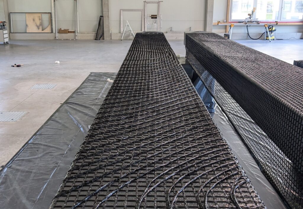 この網状の補強材は、火山岩から取り出した鉱物を主原料とする玄武岩繊維(バサルト繊維)でできている。鉄より強度や耐久性が優れており、重さも鉄の3分の2程度だ。製造には、同社がオーストリアの最先端研究機関と共同で開発した自動精密製造法が使われている。この補強材はさびない。過酷な環境でも性能がそれほど落ちず、使用後はリサイクルできる。同社によれば、補強材の素材を鉄から玄武岩に替えると、炭素排出量を最大70%減らせるという。