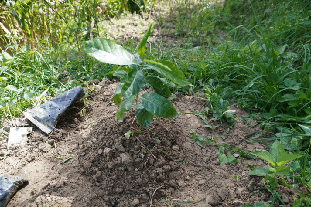コーヒーは、2年目から実がなり、3年目から収穫できるようになるそうです。この、自分の手で植えた苗が、いつか大きくなり自分の手元に届くのかぁと思うと、とても感慨深いものです。(ワイルドに手で穴を掘り、手で埋めるスタイルです)