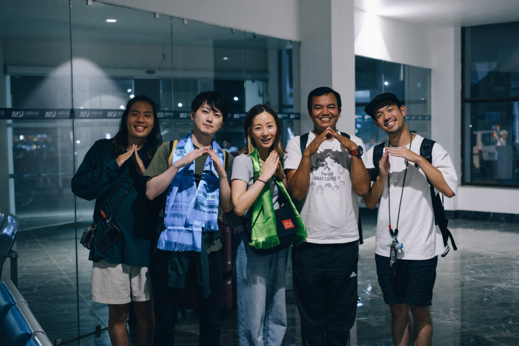 飛行機の遅延で遅れて到着したわれわれを迎えてくれたビカスメンバー。ネパール式の歓迎でカタ(スカーフ)を首にかけてもらい、ネパールでの名前を授かりました。植樹ツアーなど、ゴクールさんとネパールに訪れると全員、「ネパールネーム」を命名してもらえるそうです。