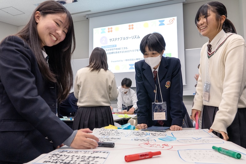 午後の部では「持続可能な農業」「サステナブルツーリズム」「住まいと環境」の3つのテーマに分かれ、実際の企業の取り組みをベースに、高校生たちが社会課題の解決策を話し合うワークショップが行われた。