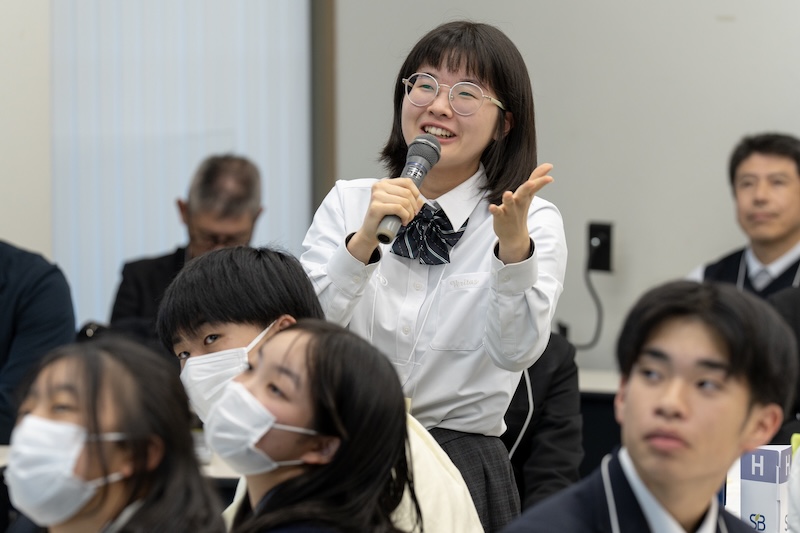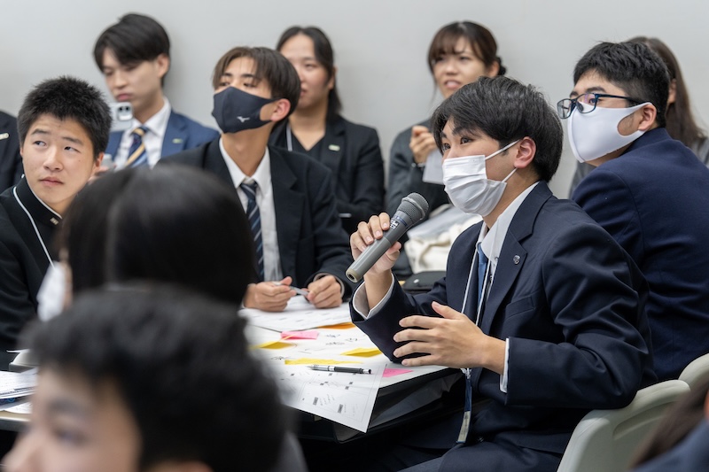 この日、出会ったばかりの別の学校の生徒たちと、一つのテーマを巡ってさまざまなアイデアを出し合い、何をどう発表するかを短時間で組み立ててプレゼンに臨んだ高校生たち。各チームの発表後には、「すごく分かりやすいポスターですが、どこに一番工夫しましたか?」「僕たちには思いつかなかった発想。どこからそのアイデアを思いついたんですか?」といった質問が飛び交い、高校生同士が学びを共有し合う場面も多く見られた。
