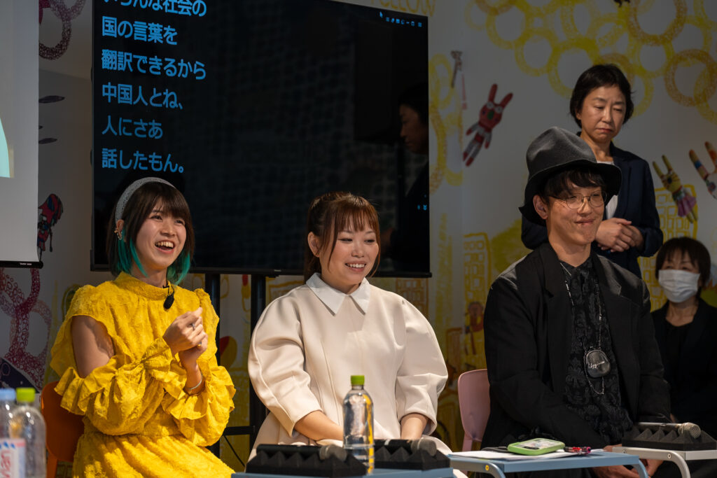 最後のトークセッションには、ろう当事者で日常的にYYSystemを使う吉田まりさん(ろうインフルエンサー)、生まれつき聞こえず、補聴器を使いながらSNSや講演で発信を続ける難聴うさぎさん(インフルエンサー)、「誰もが手話で踊れる世界」を目指し、手話ダンスなどの活動を行う北村仁さん(手話パフォーマー)が登壇。3人はそれぞれ、YYSystemを通じた出会いや、日々感じている課題、今後実現したいアイデアなどを語った。