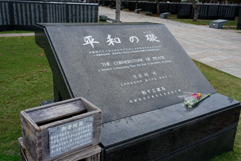 1月3日、沖縄県南部の平和祈念公園で、そう手を合わせました。雲の切れ目からのぞく青空と、群青の海。観光客もまばらな園内には、静かな時間が流れていました。