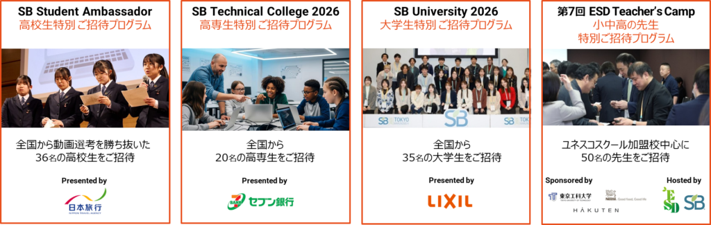 また、「次世代共創プログラム」として、将来を担う高校生・高専生・大学生と、教育向け特別プログラムを実施する。