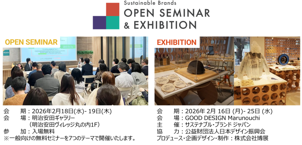 | サステナブル・ブランド国際会議 2026 東京・丸の内(SB’26 東京・丸の内) 開催日 2026年2月18日(水)、19日(木)※2日間 会場 東京国際フォーラム(東京都千代田区丸の内3丁目5-1) ※後日、アーカイブ配信(一部セッション除く) 来場者数 5000人(予定) 主催 株式会社Sinc 共催 Sustainable Brands, PBC. (本社:米国) 参加費 有料(事前登録制)※報道関係者は、事前登録で参加無料 内容 基調講演 / テーマ別ブレイクアウトセッション / ワークショップ / 次世代共創プログラム / スポンサー企業・後援団体による展示 / ネットワーキング企画 など 公式サイト https://sb-tokyo.com/2026/ |