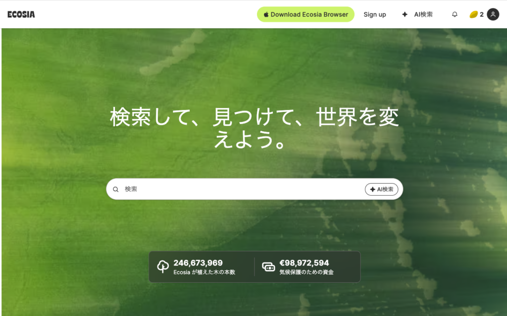 | 参照サイト Ecosia:https://www.ecosia.org/ |