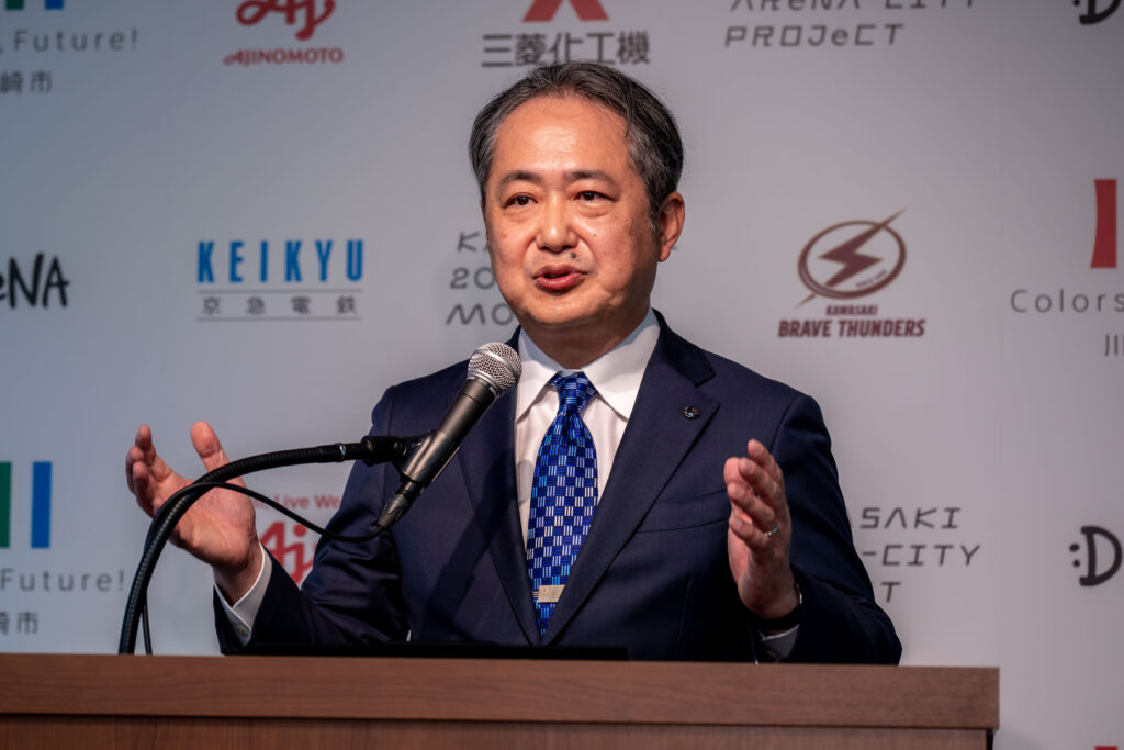 1月29日、Kawasaki Arena-City Projectに関する新パートナーシップ締結発表会が川崎市内で開かれた。その壇上で、DeNAの岡村信悟・代表取締役社長兼CEOは「(新アリーナは)単なる箱物ではなく、それが街ににじみ出していく。川崎を世界に発信するための『挑戦』だ」と、このプロジェクトの本質が「まちづくり」にあることを強調した。