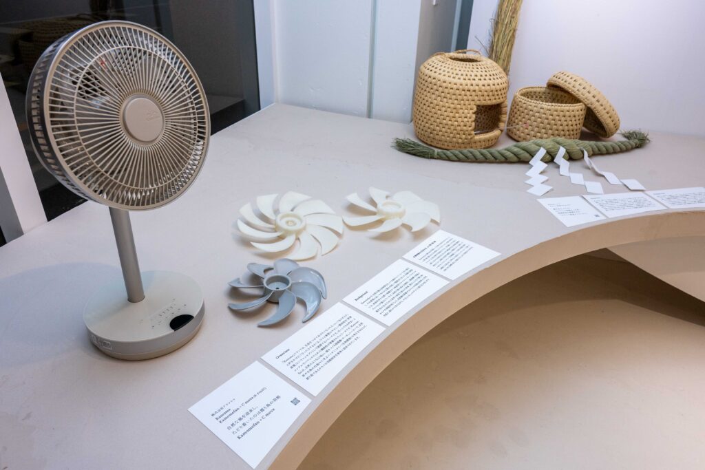 また、ドウシシャは自然のような心地良い風を作る扇風機・サーキュレーター「kamomefan」を出展。自然界や生物の仕組みに学ぶバイオミミクリー(生物模倣)の考え方をもとに、渡り鳥であるカモメの羽根形状を参考に設計した。ごみと人の暮らしを結び直すものづくりを行うfabula(ファーブラ)は、コーヒー抽出かすから作ったゴルフティーなどを紹介している。