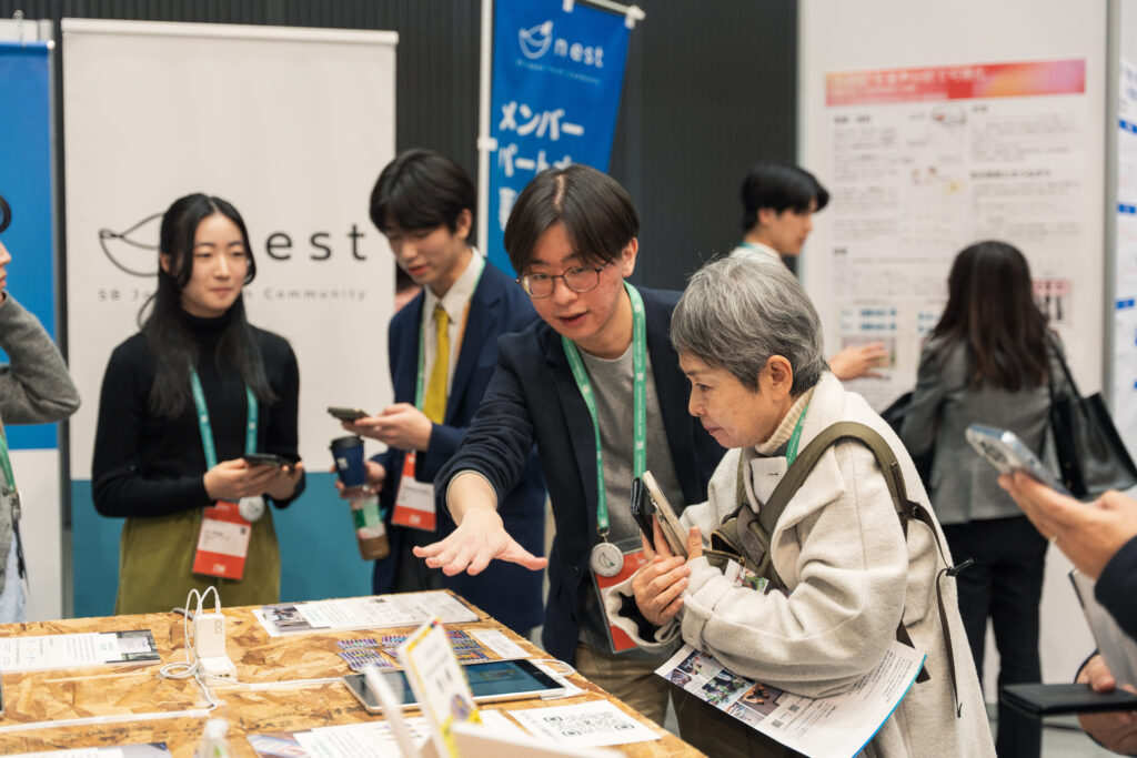国際会議では、nestの特設ブースも展開された。ブース内では、登壇したチームだけでなく、「個人のモヤモヤ」を社会問題化する探究を行ったチームや、体験型サイトを通じて多様な「真の豊かさ」への気付きを提供するチームなど、全クエストの成果が展示された。