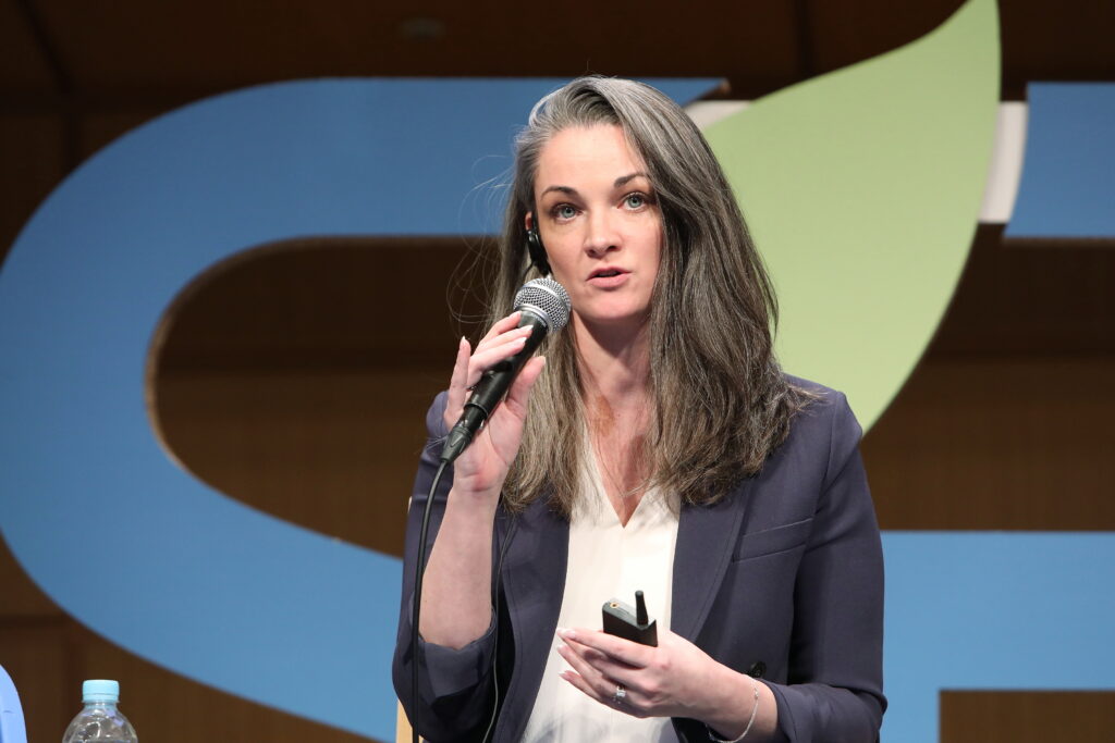 本イベントに合わせて米国から来日したというLIXILのエリン・マッカスカー氏。同社のパーパスは「世界中の誰もが願う、豊かで快適な住まいの実現」だ。
