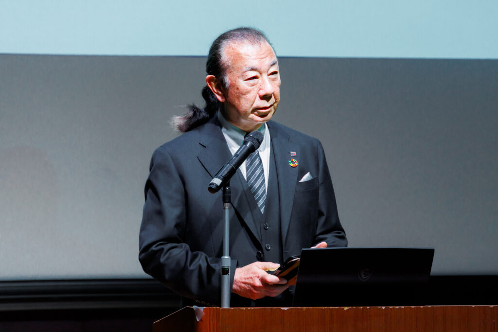 開会の挨拶に登壇したSDGs研究所コミッショナーの志太勤一・シダックス代表取締役会長兼社長は、約30年前に掲げた「社会課題解決型企業」という自社理念に触れ、「30年前は『そんな甘いことを言っても経営は成り立たない』と批判されたが、信念を変えずに言い続けてきた。理念は現実を変える力を持つということだ」と語り、持続的成長の仕組みづくりを宿命とする企業の力が地域課題解決に不可欠だと呼びかけた。