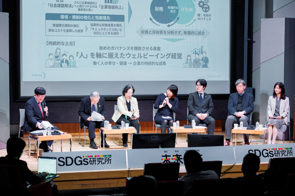 第1部後半のパネルディスカッションでは、「ビヨンドSDGsとウェルビーイング:未来を動かす人・地域・企業の役割」をテーマに白熱した議論が交わされた。