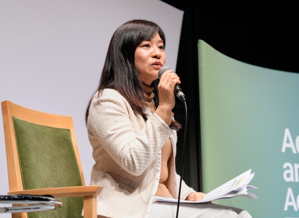 続けて、SBファウンダーであるコーアン・スカジニア氏の「未来に求められるリーダーとは、未来から奪うのではなく、未来に価値を残す者だ」という言葉を起点に、2025年秋のSBサンディエゴでの議論も紹介。アメリカではESGへの揺り戻しが生じているものの「決して後退を意味するものではない」と強調し、「Doing good」ではなく「Good business」という視点の転換が共有されたことを伝えた。そして「愚直に取り組む日本企業だからこそ、そのユニークネスを前面に出すことで突破できるものがある」と力を込めた。