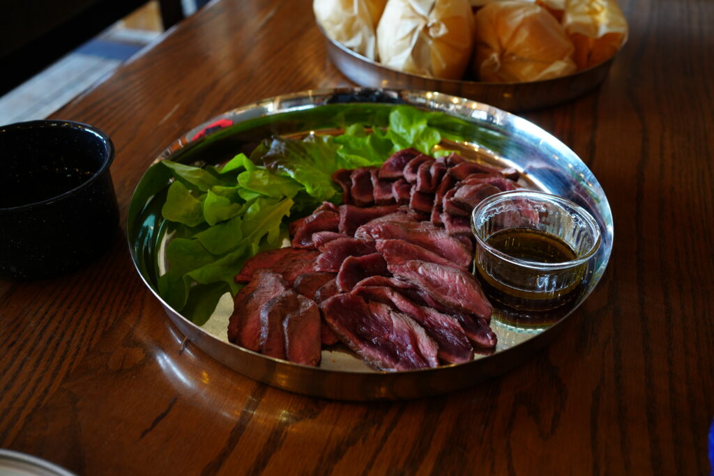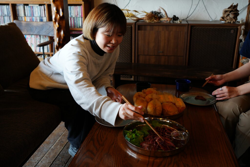 みんなで手を合わせ、「いただきます」と声をそろえます。それはランチの時とは全く違う重みを持つ言葉でした。感謝の気持ちがあふれ、自然と目を閉じます。いただいたお肉はとてもおいしく、私はお肉を食べることをやめられないな、と思いました。