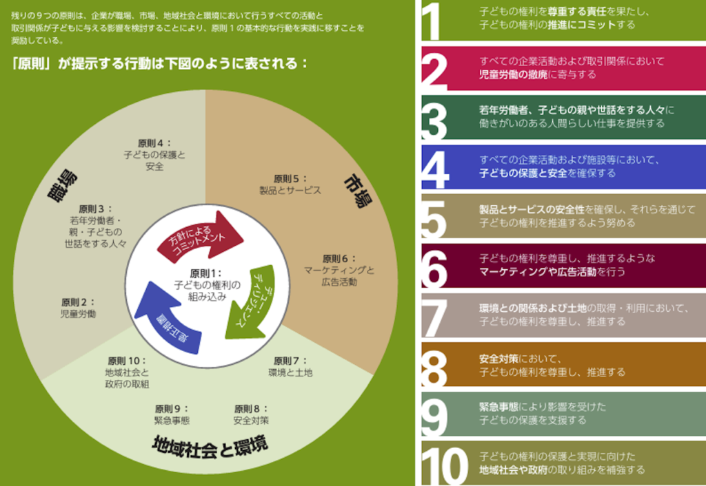 そうした流れを受け、企業が実践のよりどころとして活用できるのが「子どもの権利とビジネス原則」です。セーブ・ザ・チルドレン、ユニセフ、国連グローバル・コンパクトの三者が2012年に策定した10の原則で、児童労働の撤廃から職場環境、マーケティング、環境対応まで、ビジネスが子どもの権利とどう向き合うべきかを体系的に示しています。今回の連載は、この原則を軸につづっていきます。
