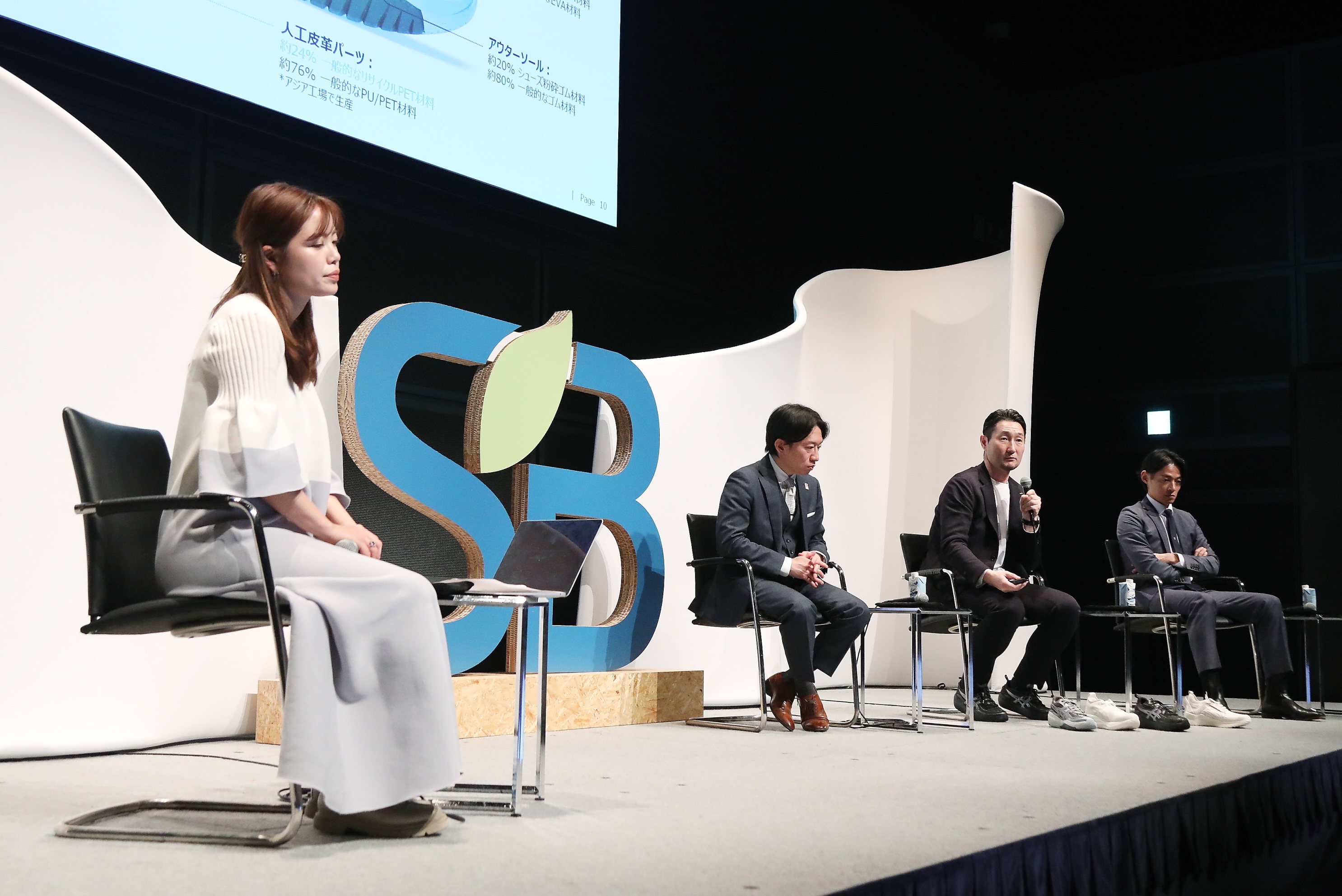 ファシリテーターの石山アンジュ氏は冒頭、サーキュラーエコノミーは「取り入れるべきか」から「どうビジネスと両立させるか」の段階に移っていると問題提起。会場では約6割がすでに取り組んでいると挙手し、前年のセッション時と比較しても着実な広がりがうかがえた。